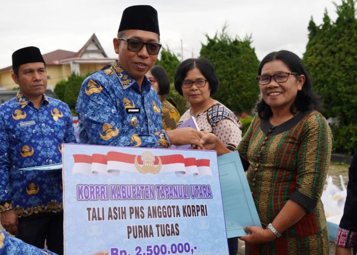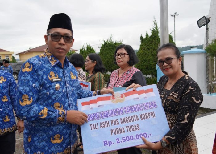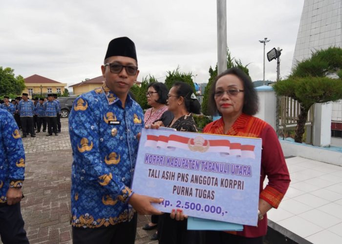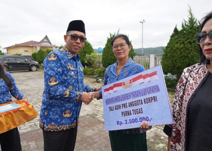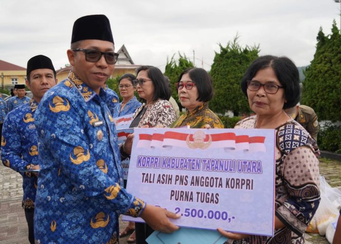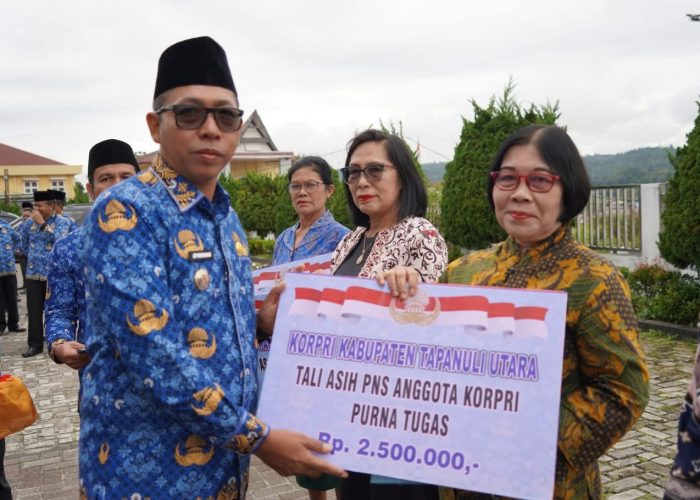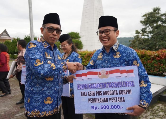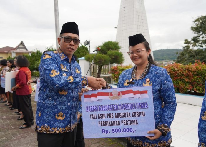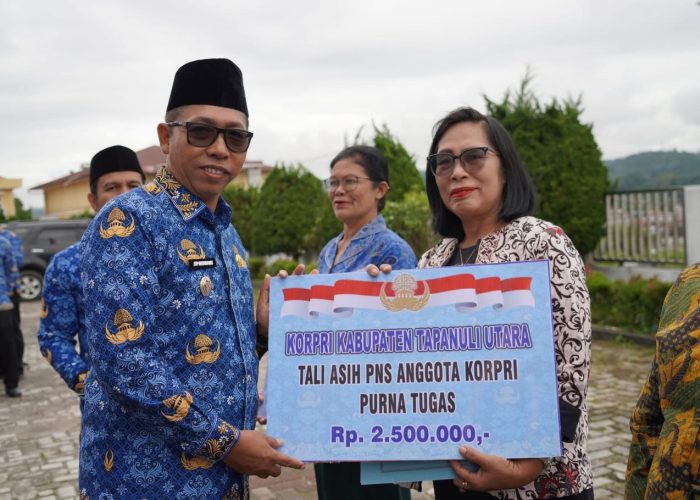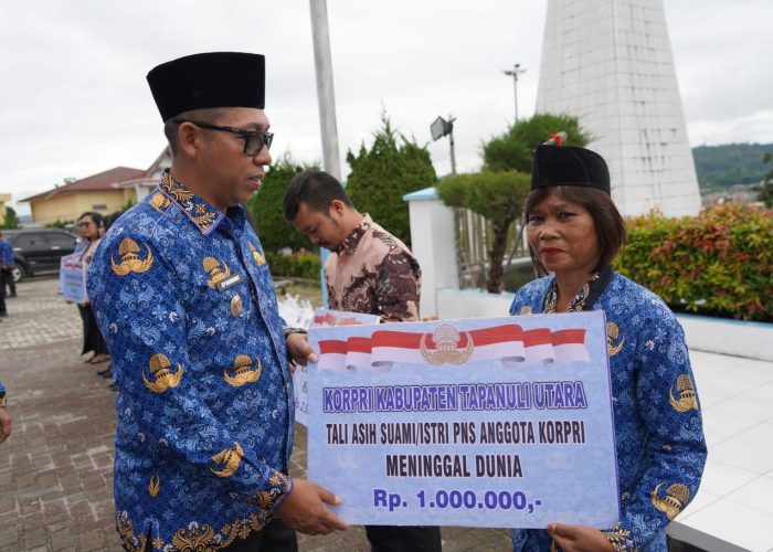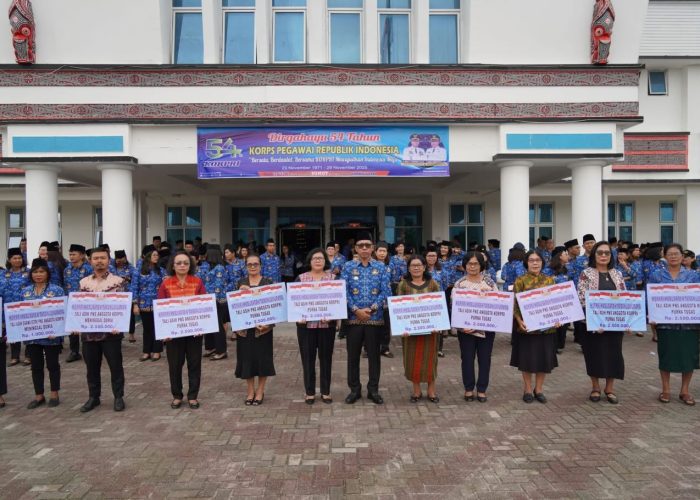 Usai upacara, kegiatan dilanjutkan dengan pemotongan kue HUT KORPRI ke-54 serta penyerahan tali asih kepada pensiunan dan anggota KORPRI sebagai bentuk kepedulian dan kebersamaan di lingkungan Pemerintah Kabupaten Tapanuli Utara.